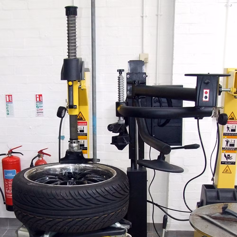 Denna däckmaskin kan utrustas med en hjälp arm (WCAA tillval, 9995:-)