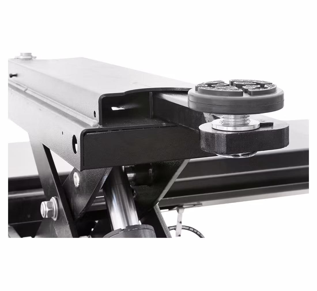 Banorna kan justeras mellan 800 och 950 mm. Du kan enkelt ställa in dem för bilar med den smala och breda hjulbasen. Plus att det finns speciella spärrar som hindrar bilen att rulla.